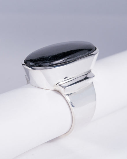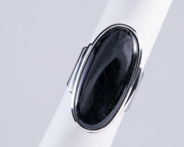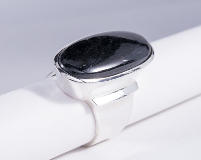 Black Tourmaline Sterling Silver Ring Size 10 (AH772)