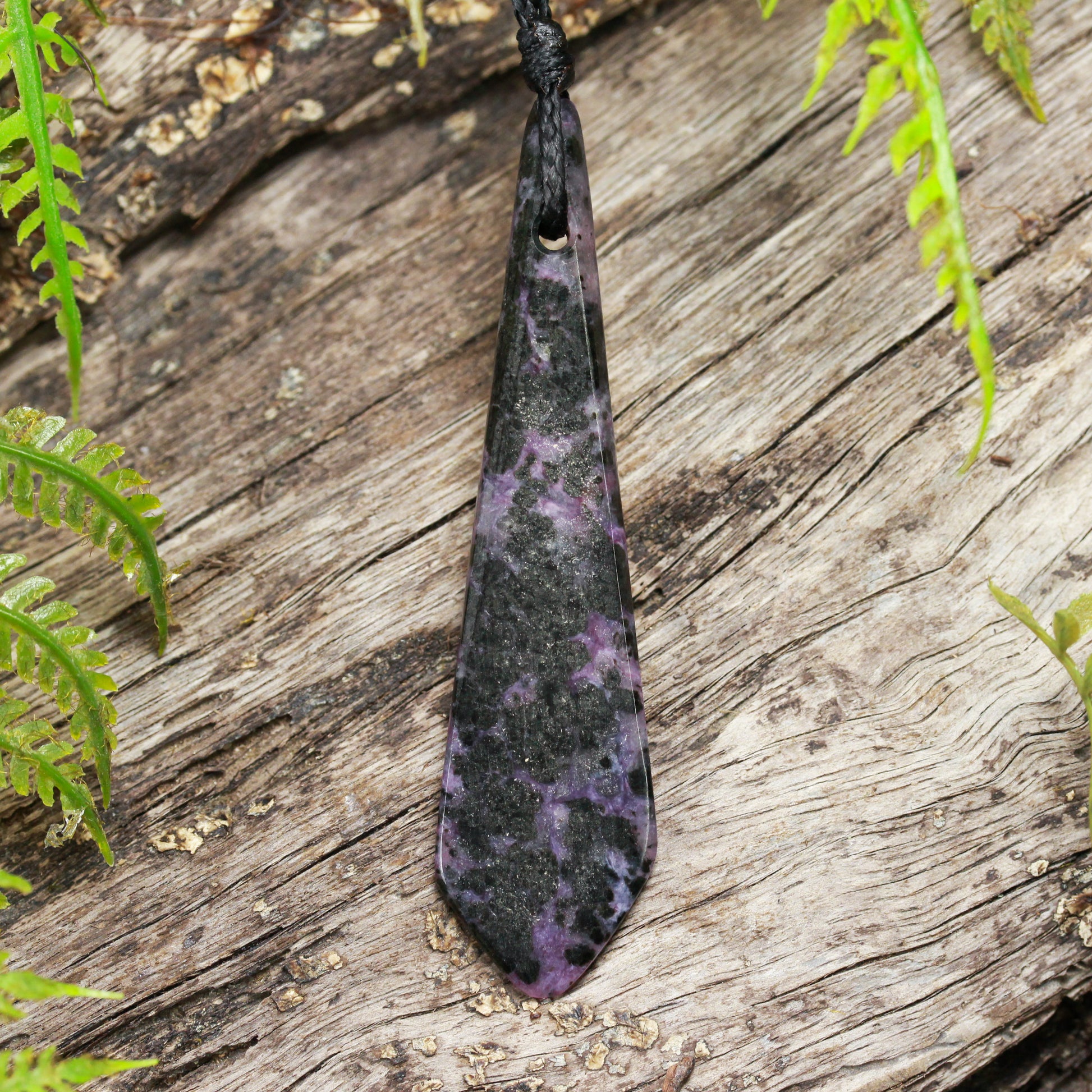 Beautifully coloured freeform Charoite pendant. Carved by Dean Taylor.
