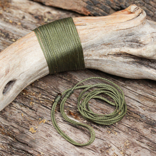 Olive green cord. Comes with adjustable knots. Suitable for small pendants.