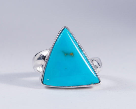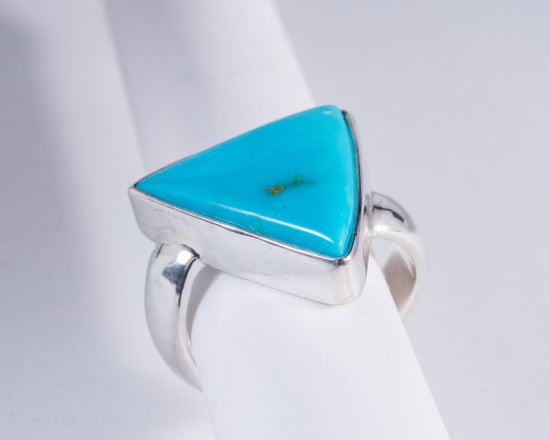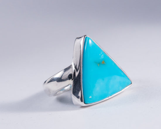 Stunning Sterling Silver Ring with Kingman Mine Turquoise cabochon. The stone has been hand carved here in New Zealand by Allan Moreton.