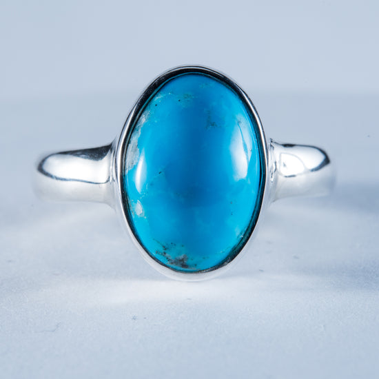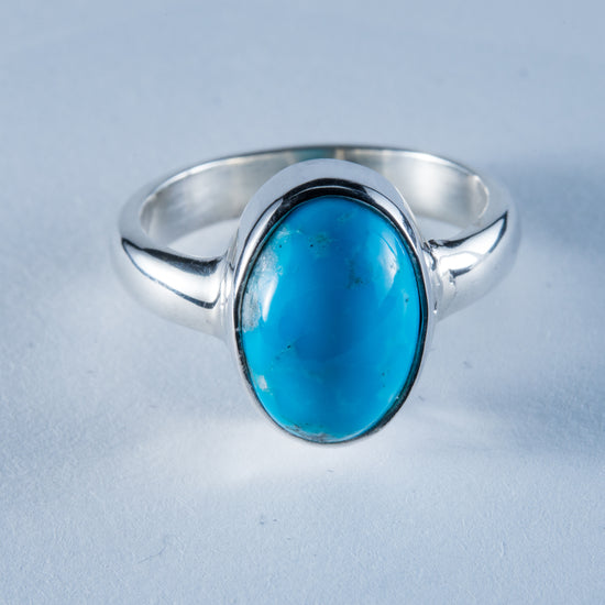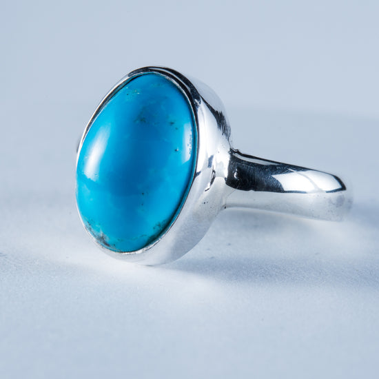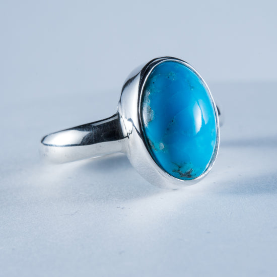 Stunning Sterling Silver Ring with Kingman Mine Turquoise cabochon. The stone has been hand carved here in New Zealand by Allan Moreton.