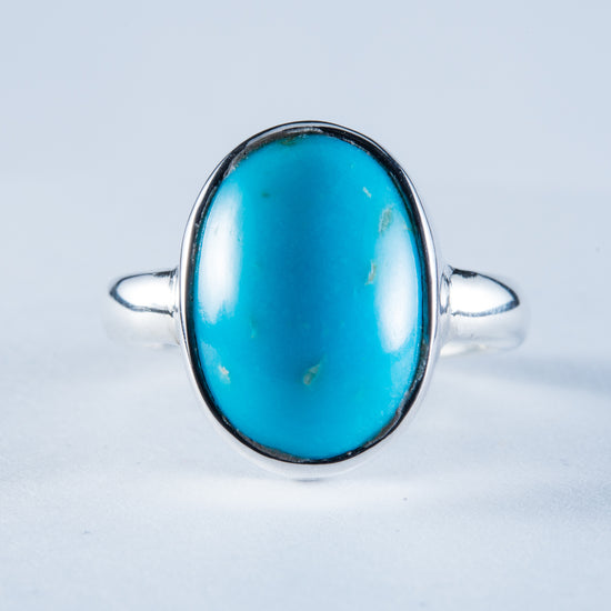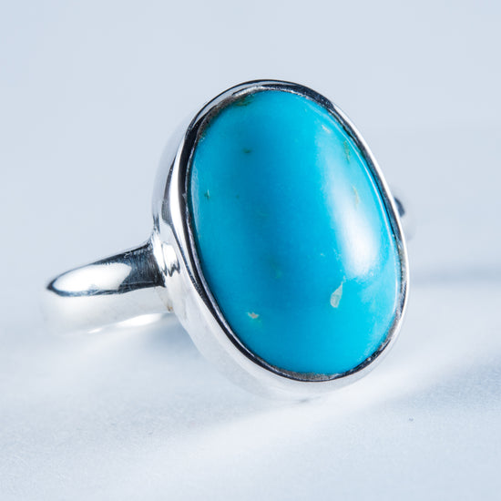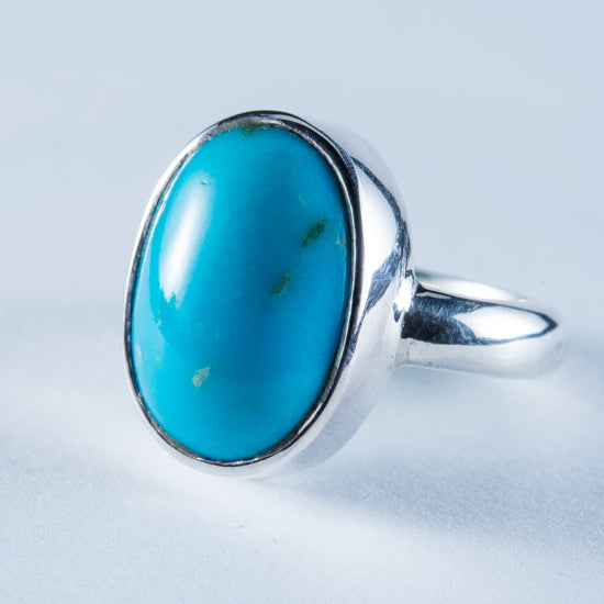 Stunning Sterling Silver Ring with Kingman Mine Turquoise cabochon. The stone has been hand carved here in New Zealand by Allan Moreton.