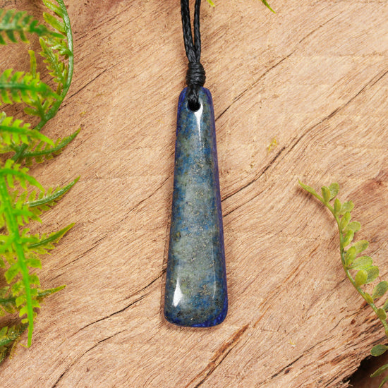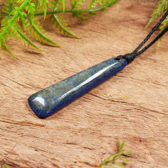 Beautifully coloured freeform Lapis Lazuli Toki pendant. Carved locally.