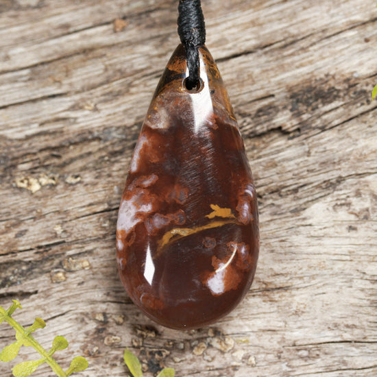 Roimata pendant carved locally from a Moroccan Agate. Carved by Dean Taylor.