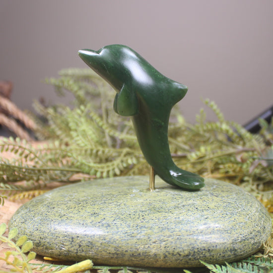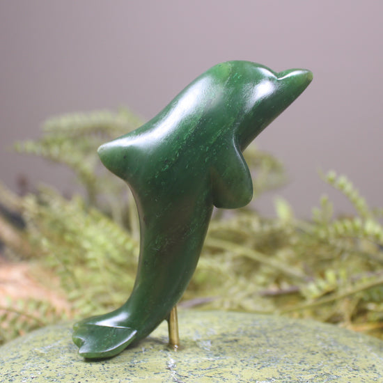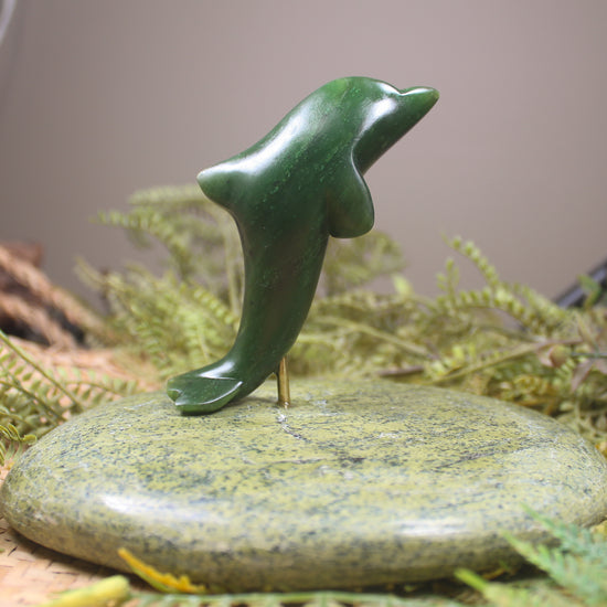 NZ Greenstone Aihe Dolphin Sculpture (BM740) Kawakawa Pounamu