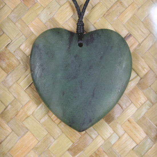 NZ Greenstone Framed Heart Pendant (BE239) Hapopo Pounamu
