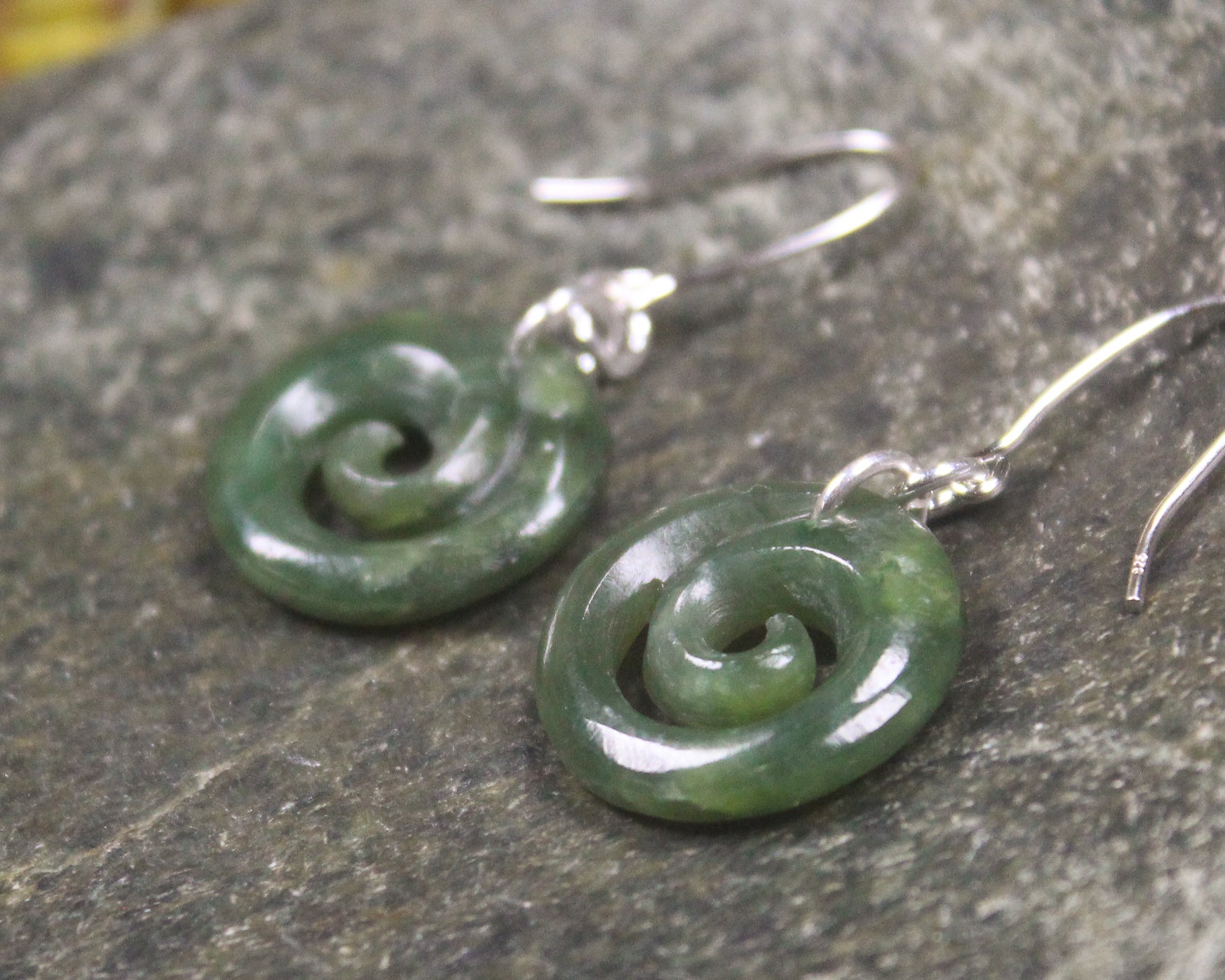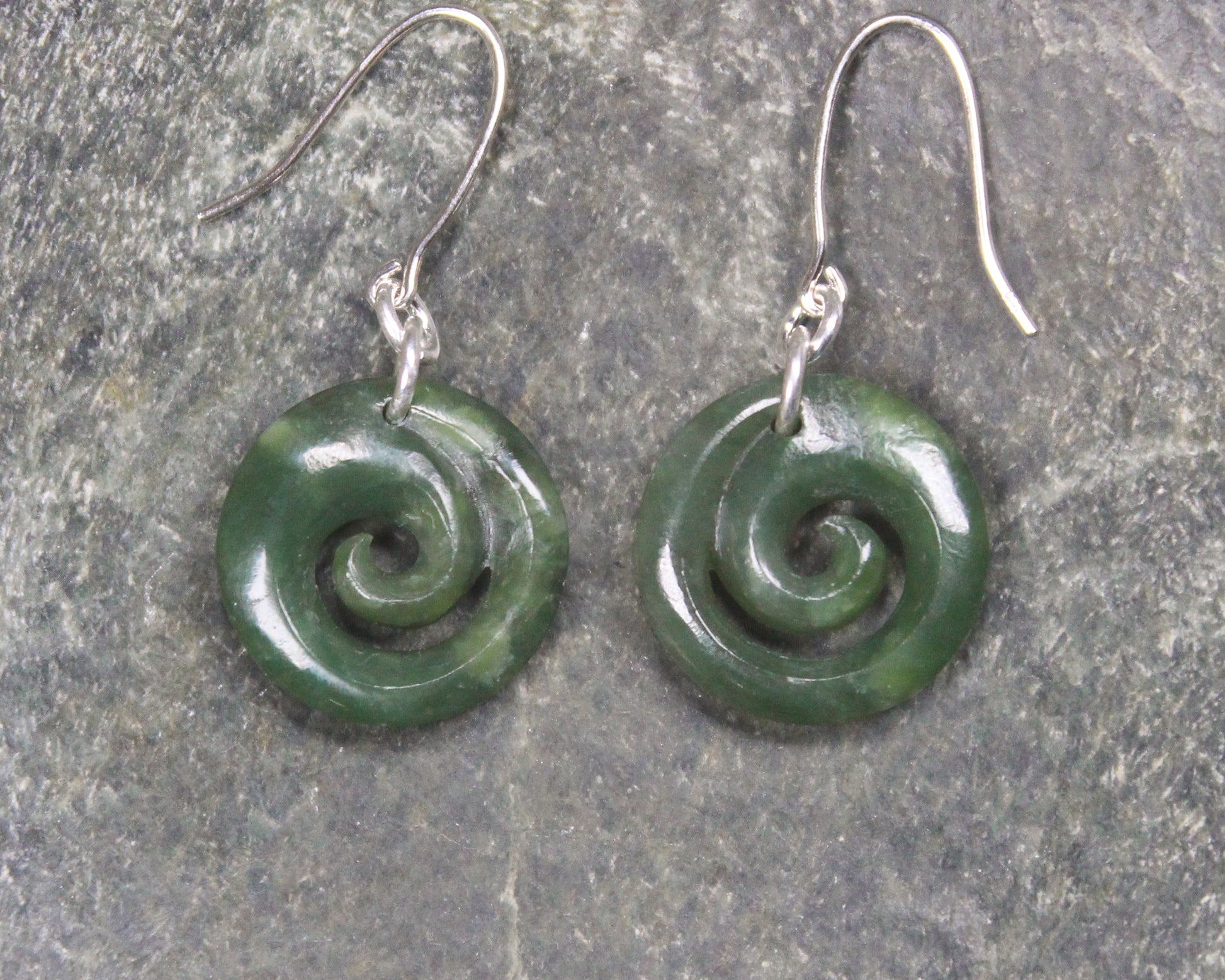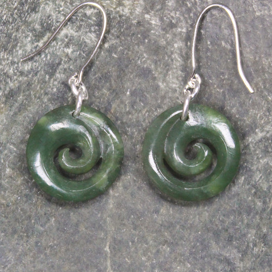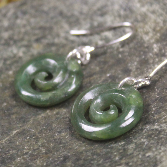 Gorgeous Koru Pounamu earrings. These have wonderful movement. Hand carved locally.