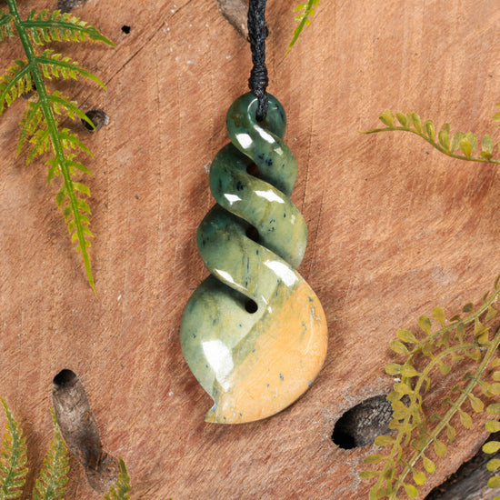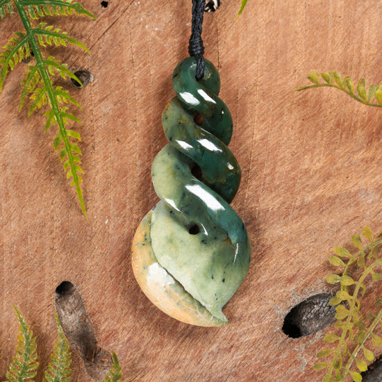 Stunning Flower Jade Pounamu carved into a lovely Twist. Carved locally.
