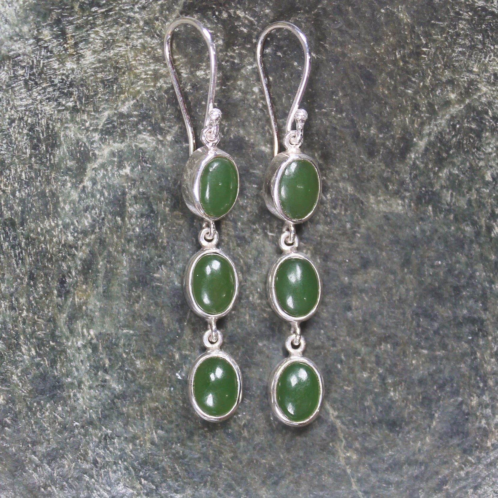 NZ Greenstone Linked Drop Earrings (BM458) Hapopo Pounamu