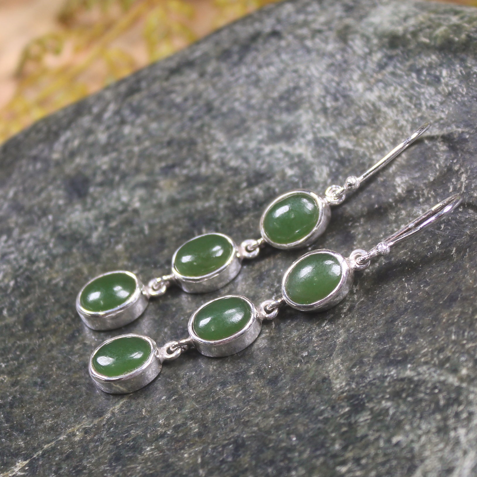 Drop link Pounamu earrings with sterling silver hooks. These have wonderful movement. Hand carved by Dean Taylor.