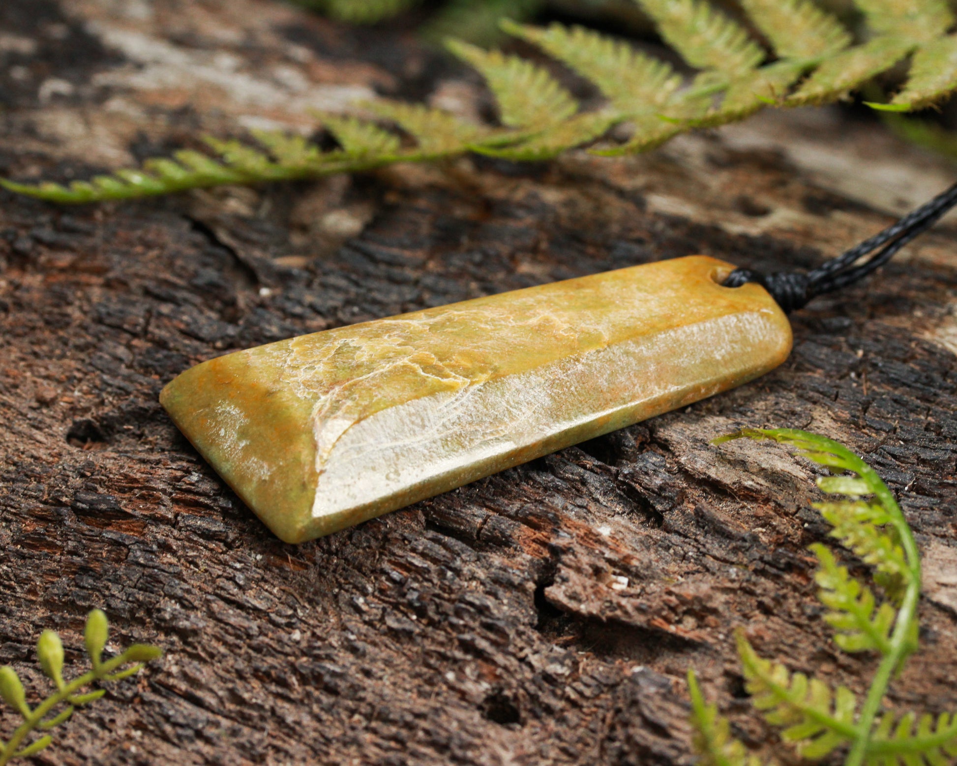 Beautiful Flower Jade Pounamu carved into a lovely freeform Toki pendant. Carved locally
