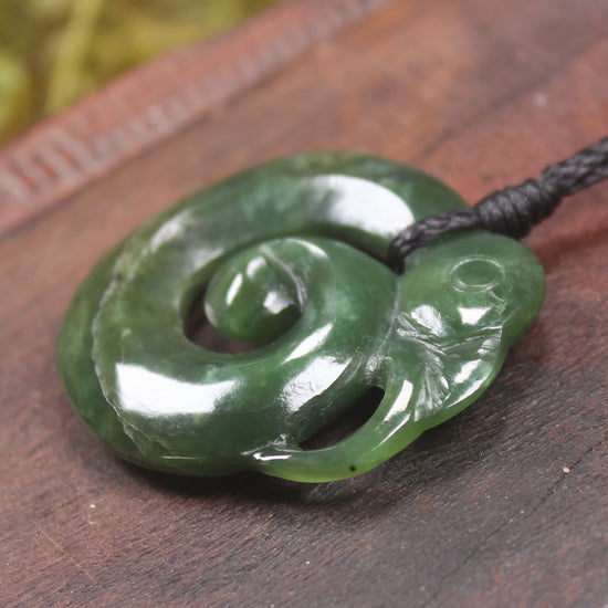 NZ Greenstone Medium Koropepe Pendant (BC619) Kawakawa Pounamu