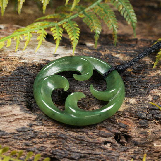 Stunning Hapopo Pounamu carved into a lovely Koru by Allan Moreton.