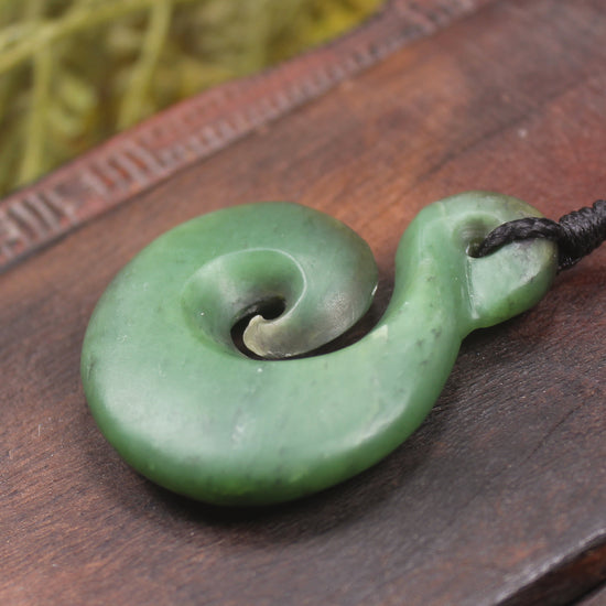 Stunning Hapopo Pounamu carved into a lovely Koru by Dean Taylor.