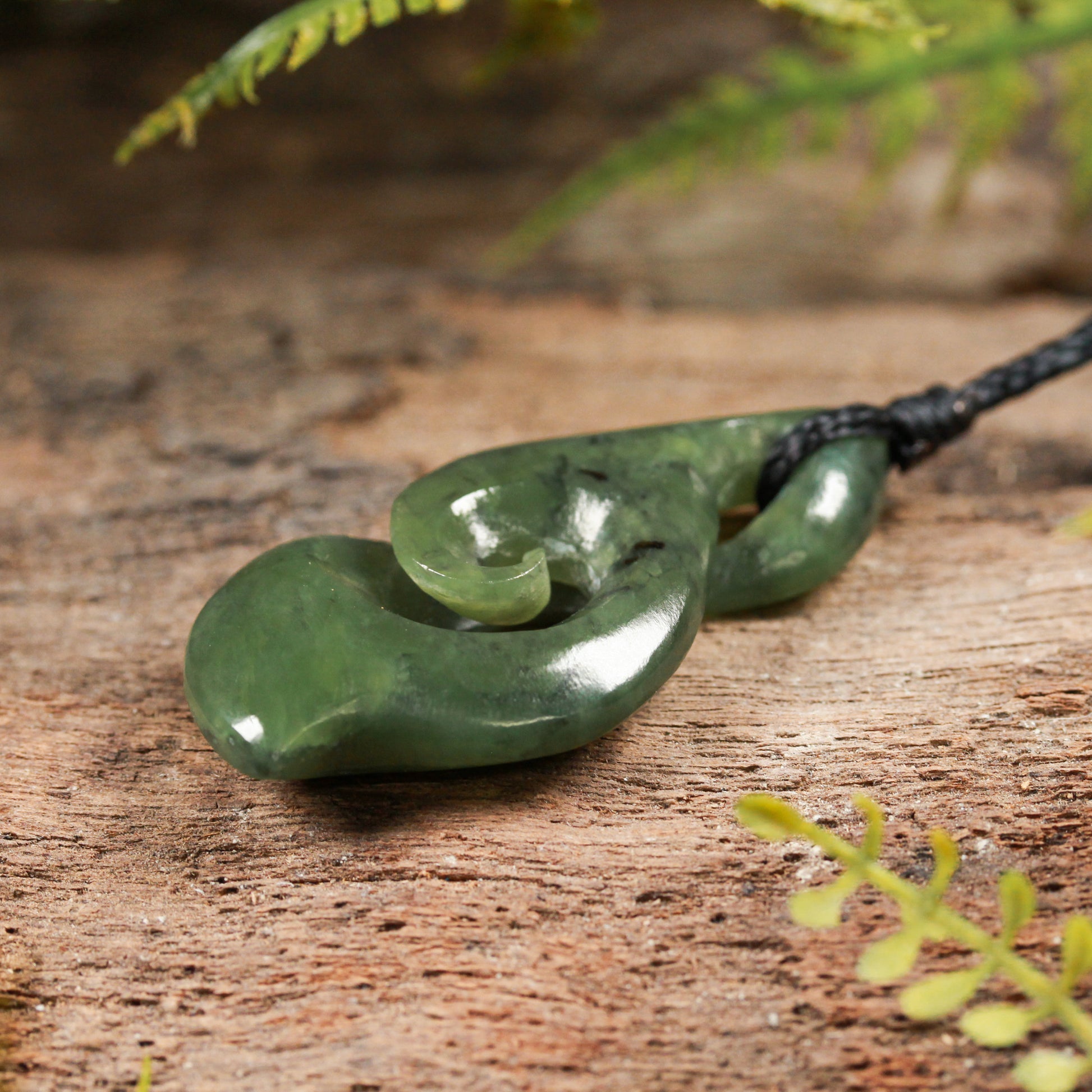Stunning Hapopo Pounamu carved into a lovely Koru Twist that has a graceful feel to the design. Carved locally.