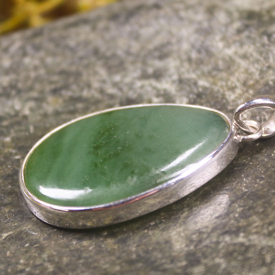 NZ Greenstone Medium Sterling Silver Pendant (BM500) Hapopo Pounamu
