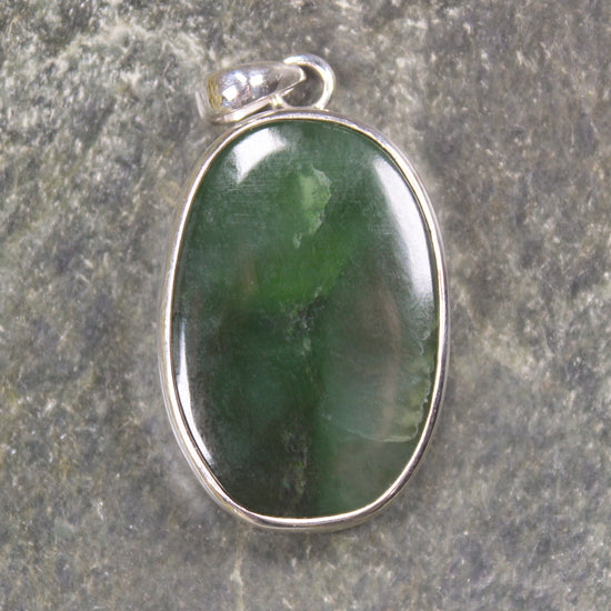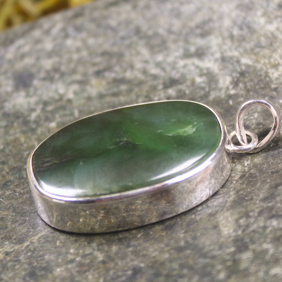 NZ Greenstone Medium Sterling Silver Pendant (BM561) Hapopo Pounamu