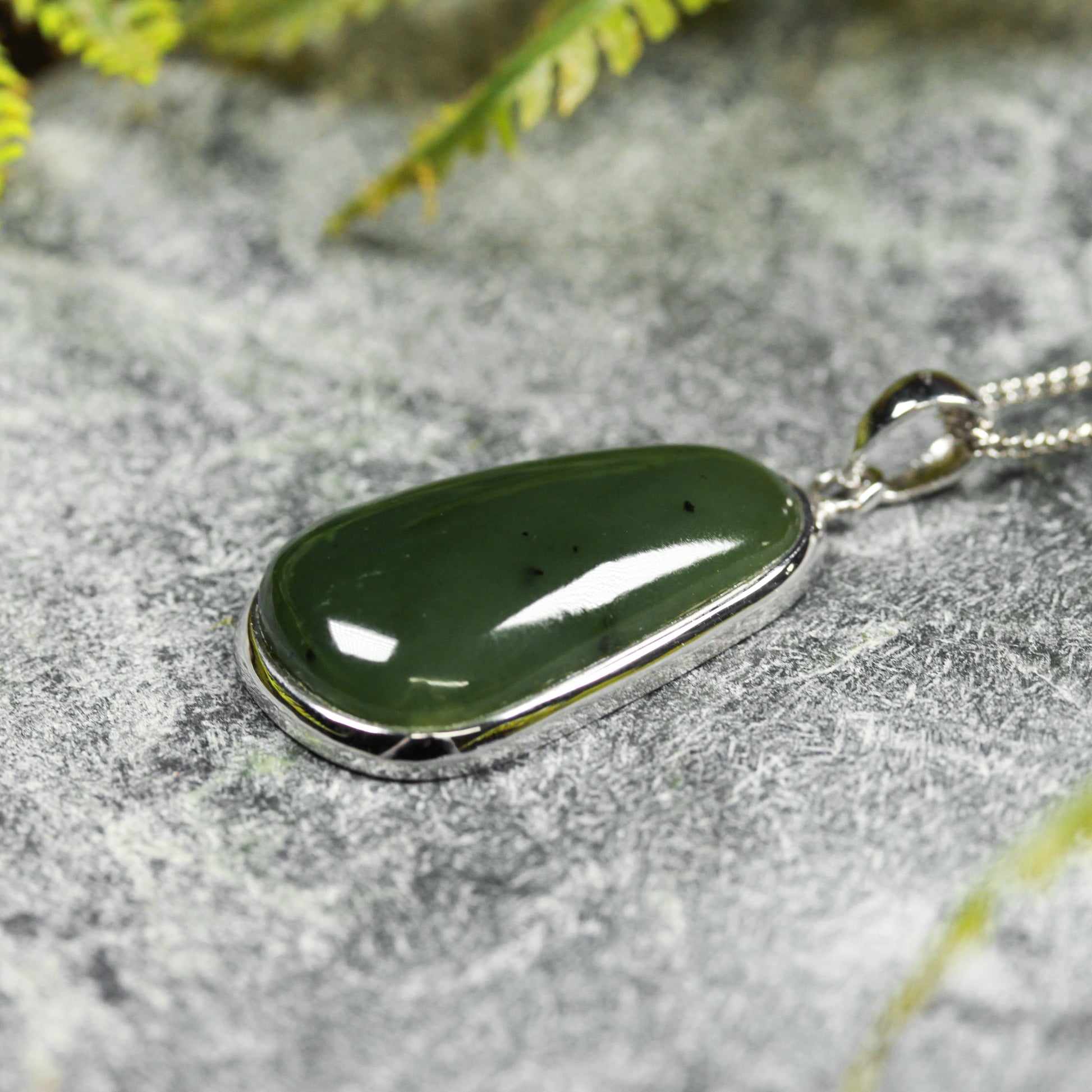 NZ Greenstone Medium Sterling Silver Pendant (BP864) Kawakawa Pounamu