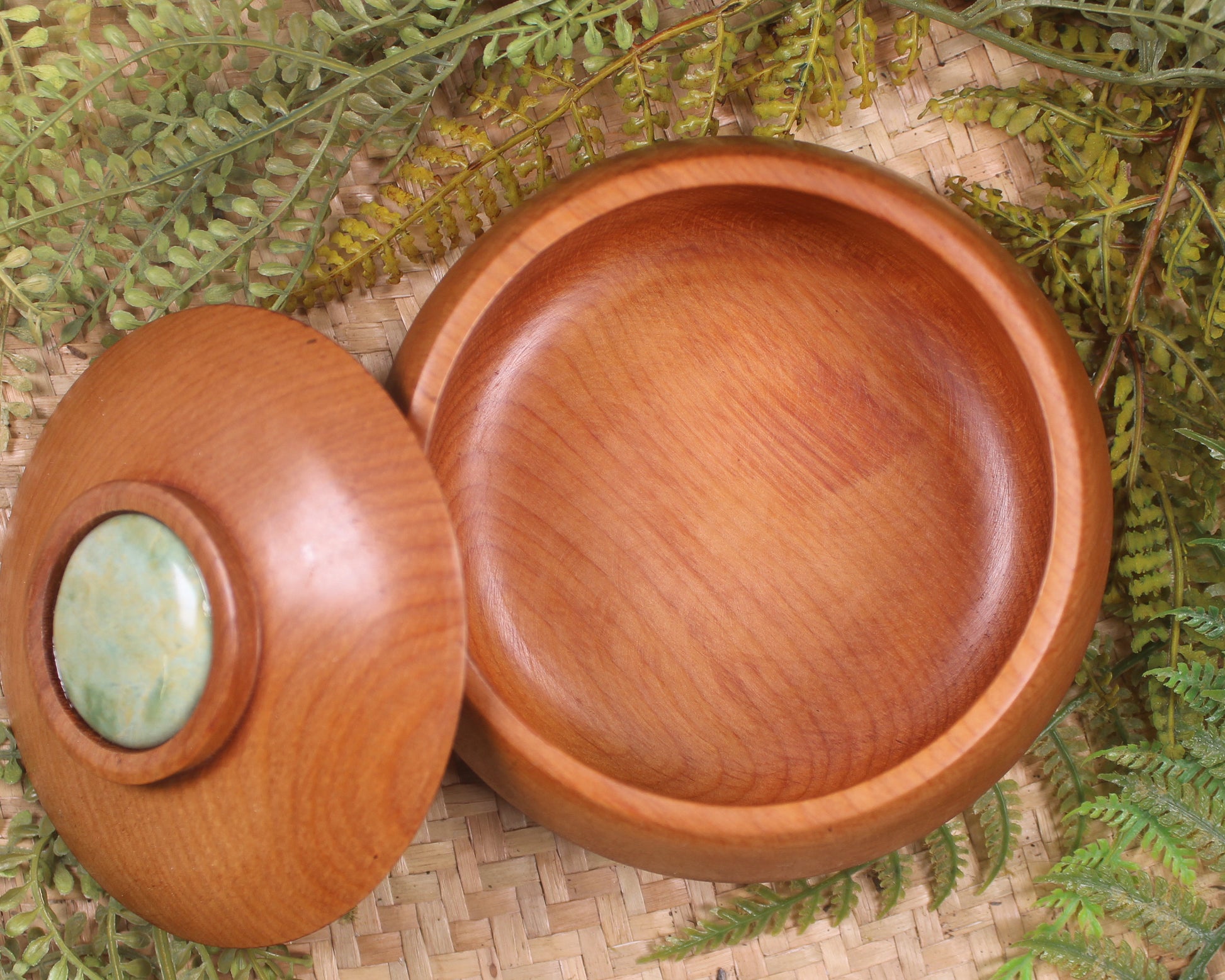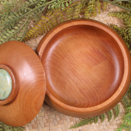 NZ Greenstone NZ Wood Container (BM821) Flower Jade Pounamu