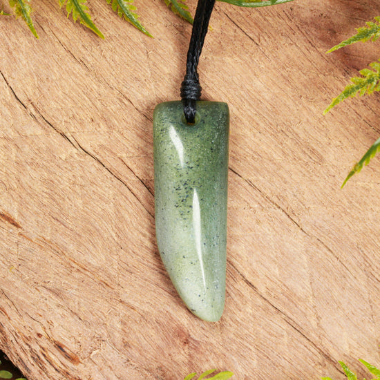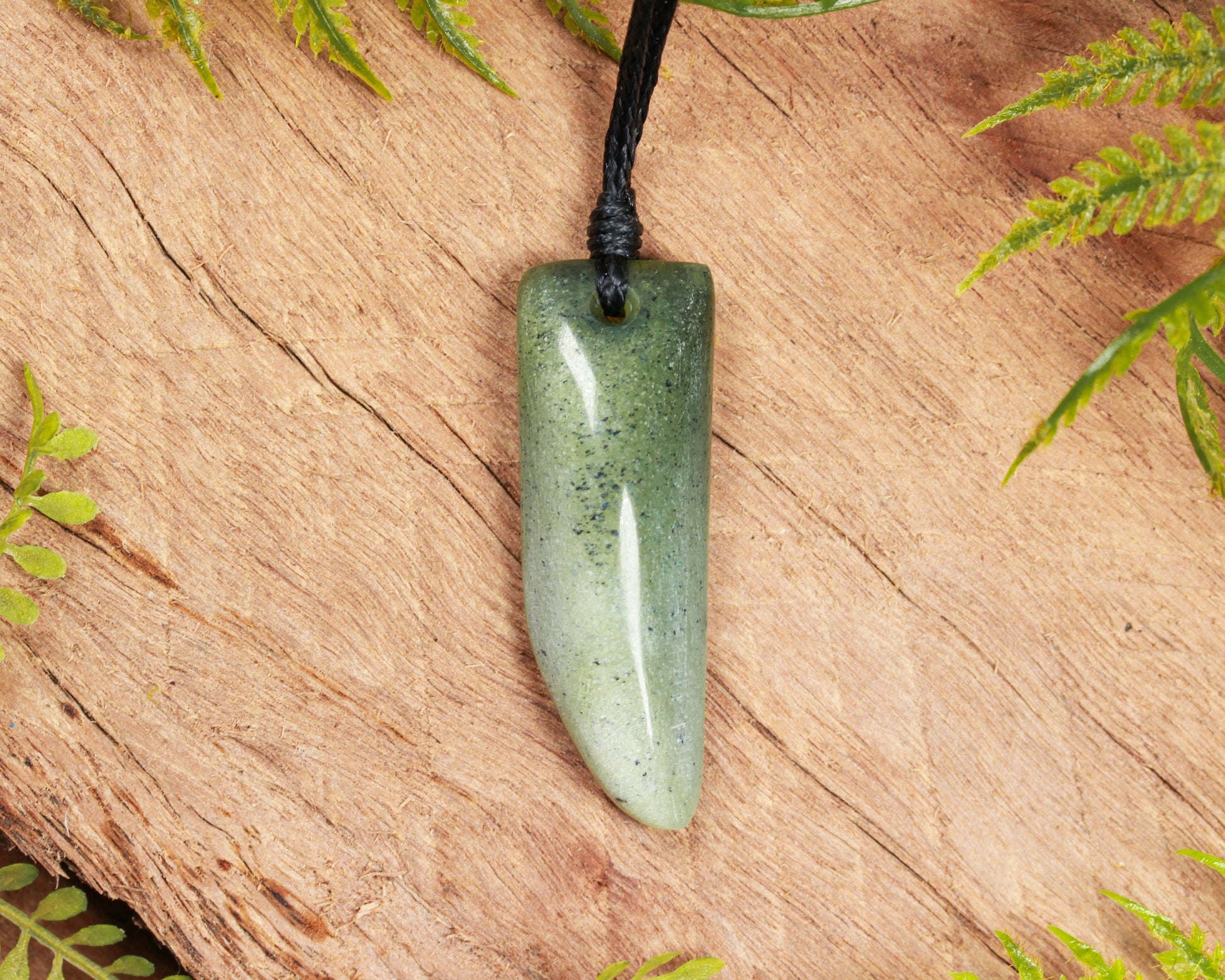 Lovely freeform Tangiwai Pounamu Niho or Taniwha Tooth. Carved locally.