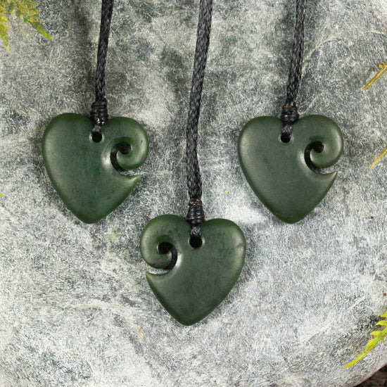 NZ Greenstone Small Koru Heart Pendant (BM682) Rimu Pounamu