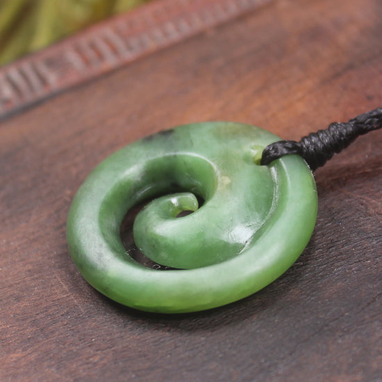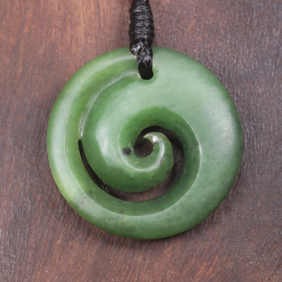 Stunning Hapopo Pounamu carved into a lovely Koru by Dean Taylor.