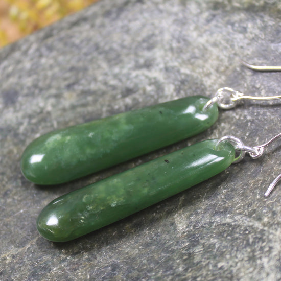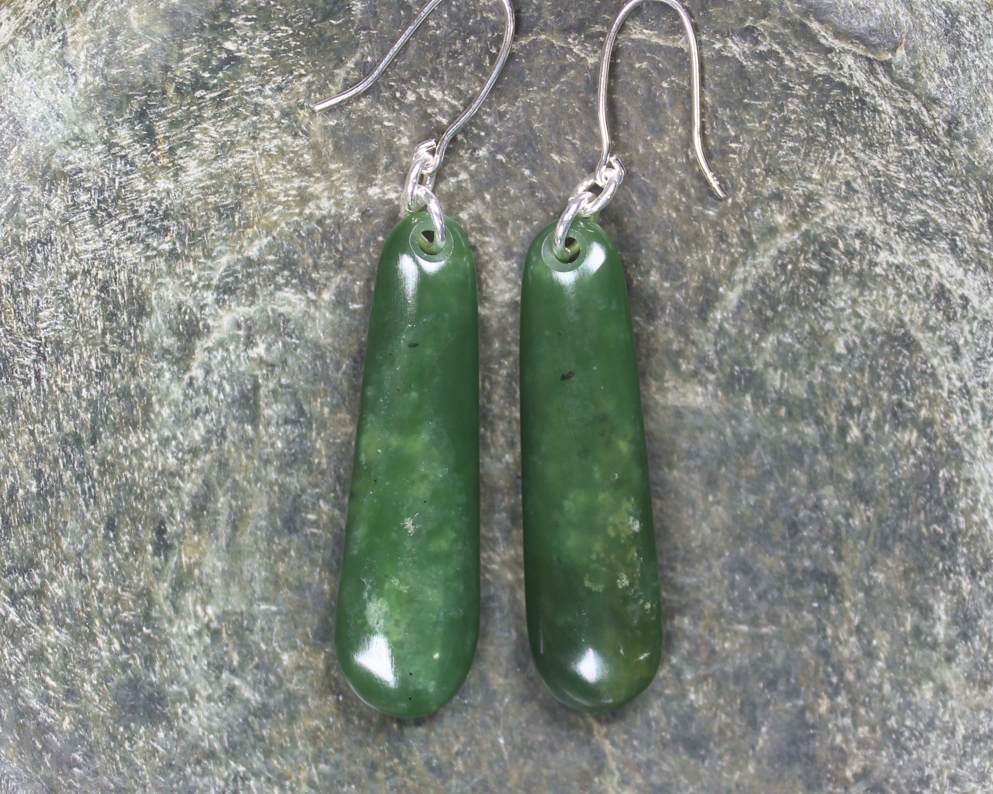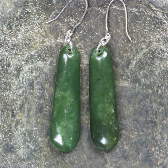 Roimata Pounamu earrings with Sterling Silver hooks. These have wonderful movement. Hand carved locally by Dean Taylor.