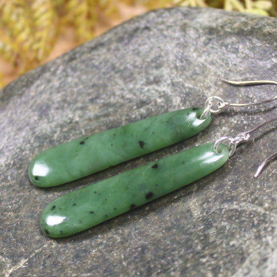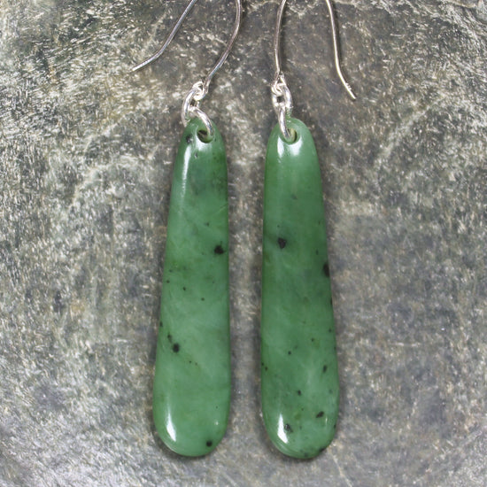 Roimata Pounamu earrings with Sterling Silver hooks. These have wonderful movement. Hand carved locally by Dean Taylor.