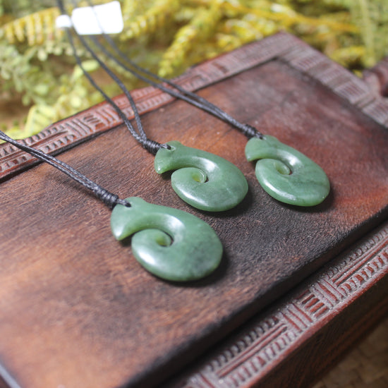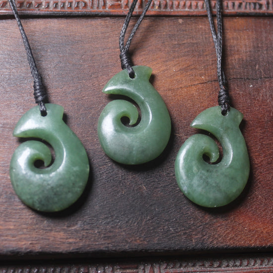 Lovely styled Hei Matau, much sought-after style carved locally from Inanga Pounamu.