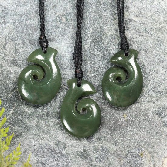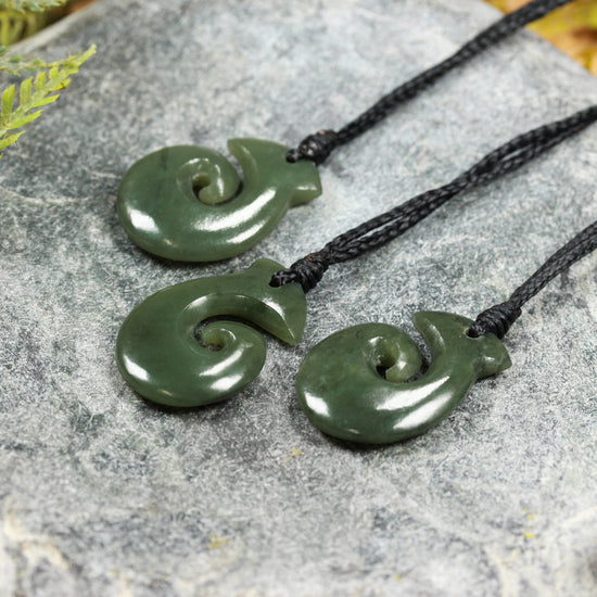 Lovely styled Hei Matau, much sought-after style carved locally from Hapopo Pounamu.