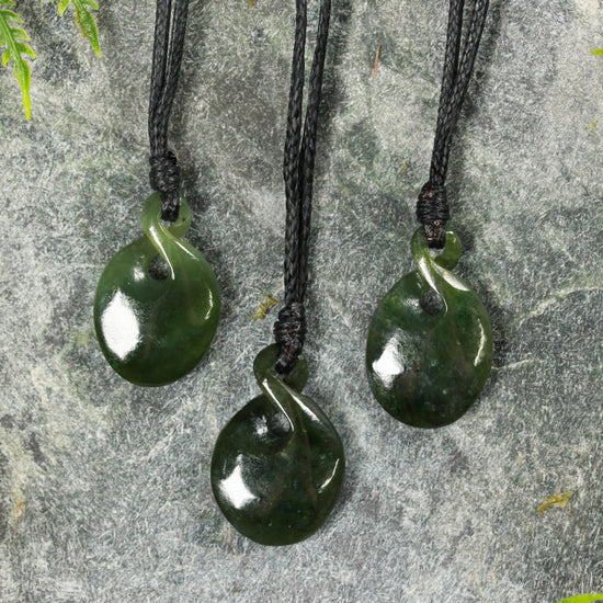 Stunning Pounamu carved into a lovely Twist that has an almost Celtic feel. Carved locally.