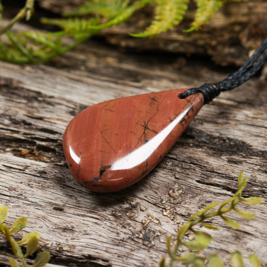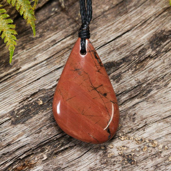 Beautiful NZ Jasper carved into a lovely freeform Roimata pendant.