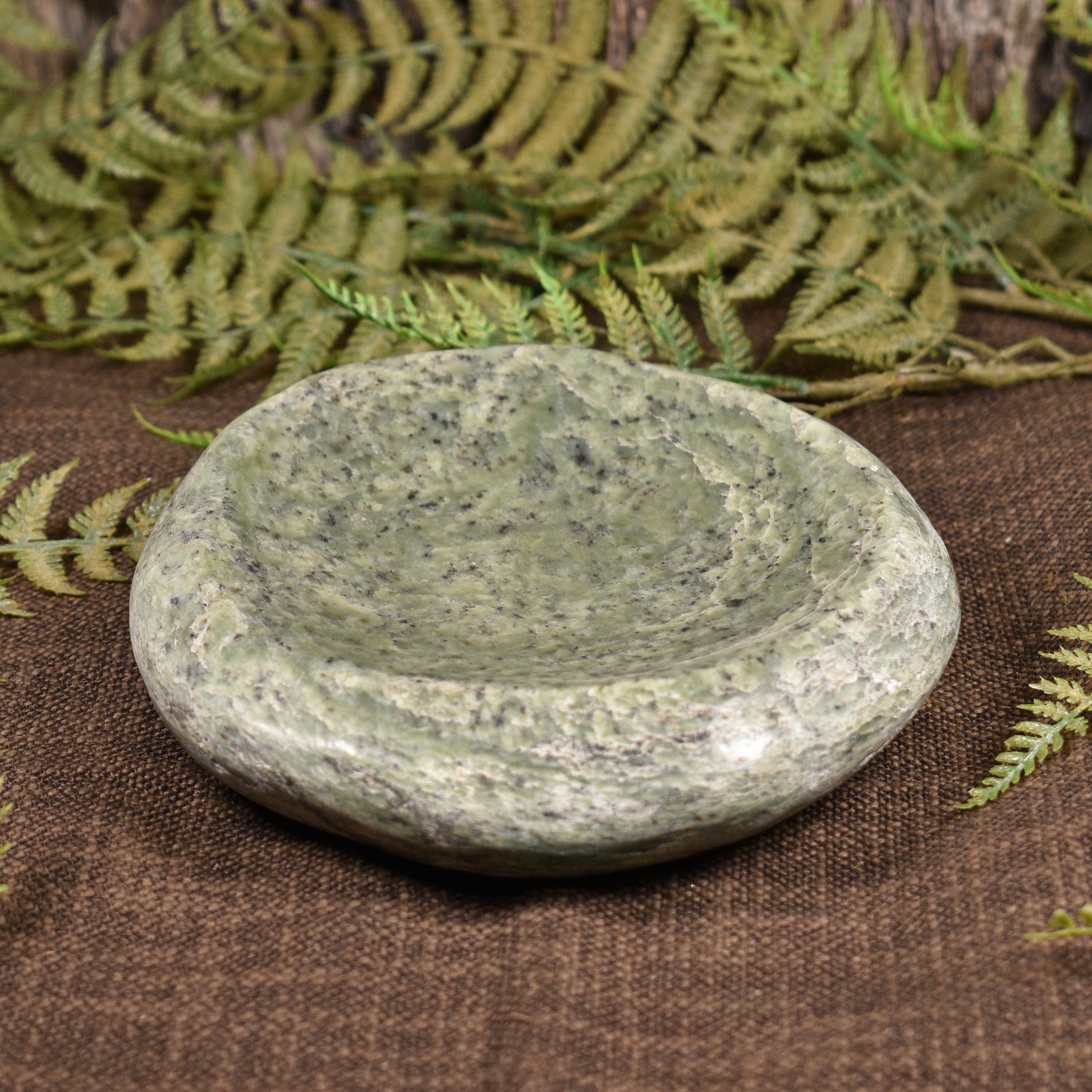 Beautiful decorative bowl carved from NZ Serpentine. Carved in our studio by Brownie Barlow.