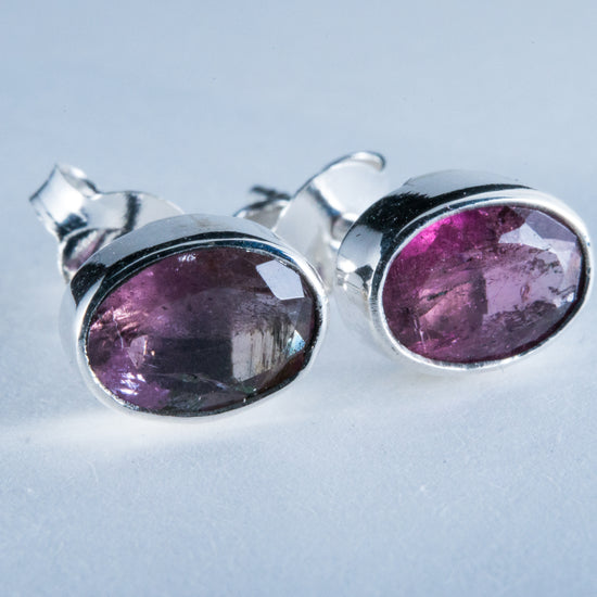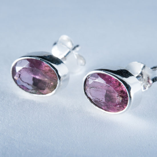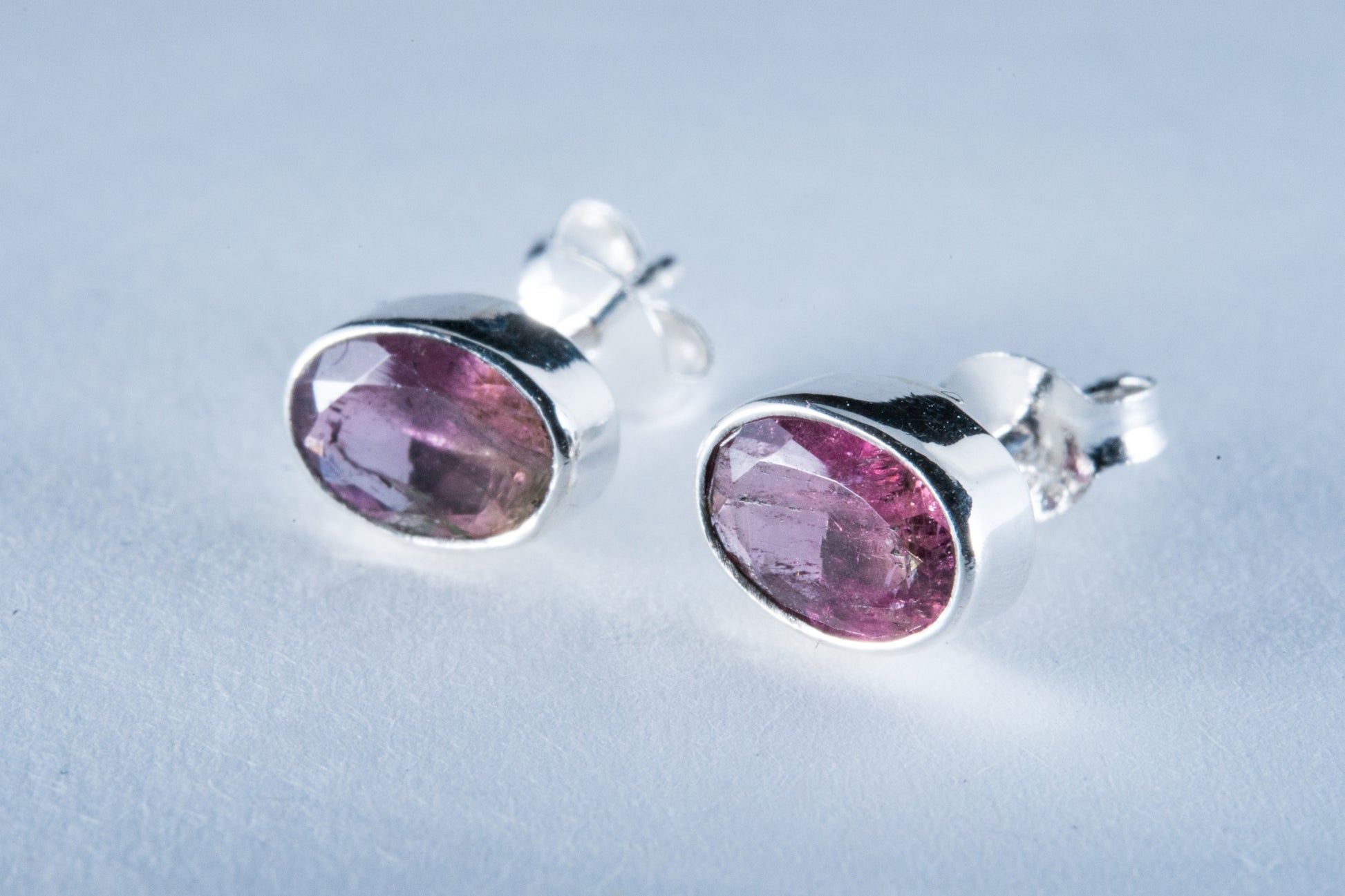 Pink Tourmaline Faceted Sterling Silver Stud Earrings (AZ098)