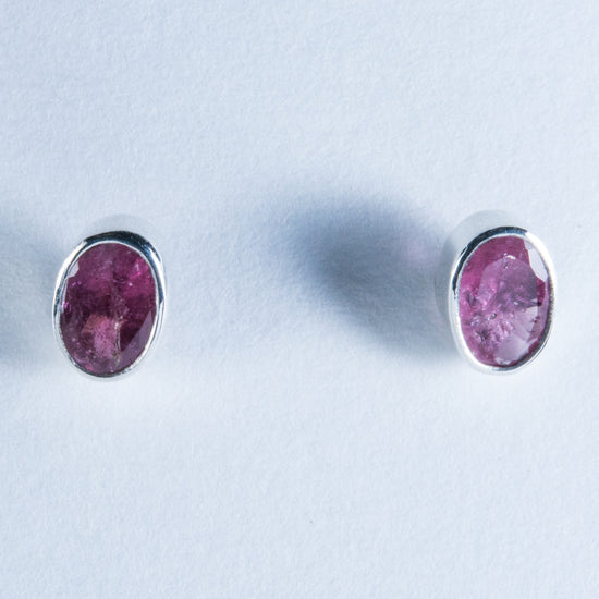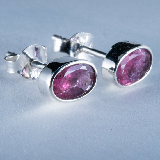 Pink Tourmaline Faceted Sterling Silver Stud Earrings (AZ099)