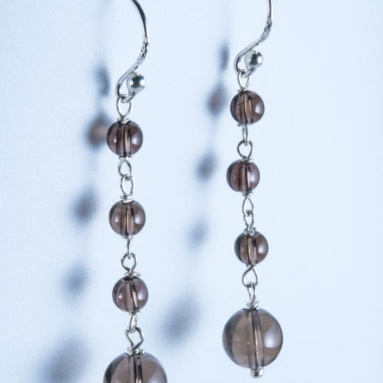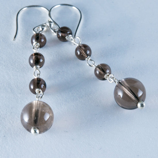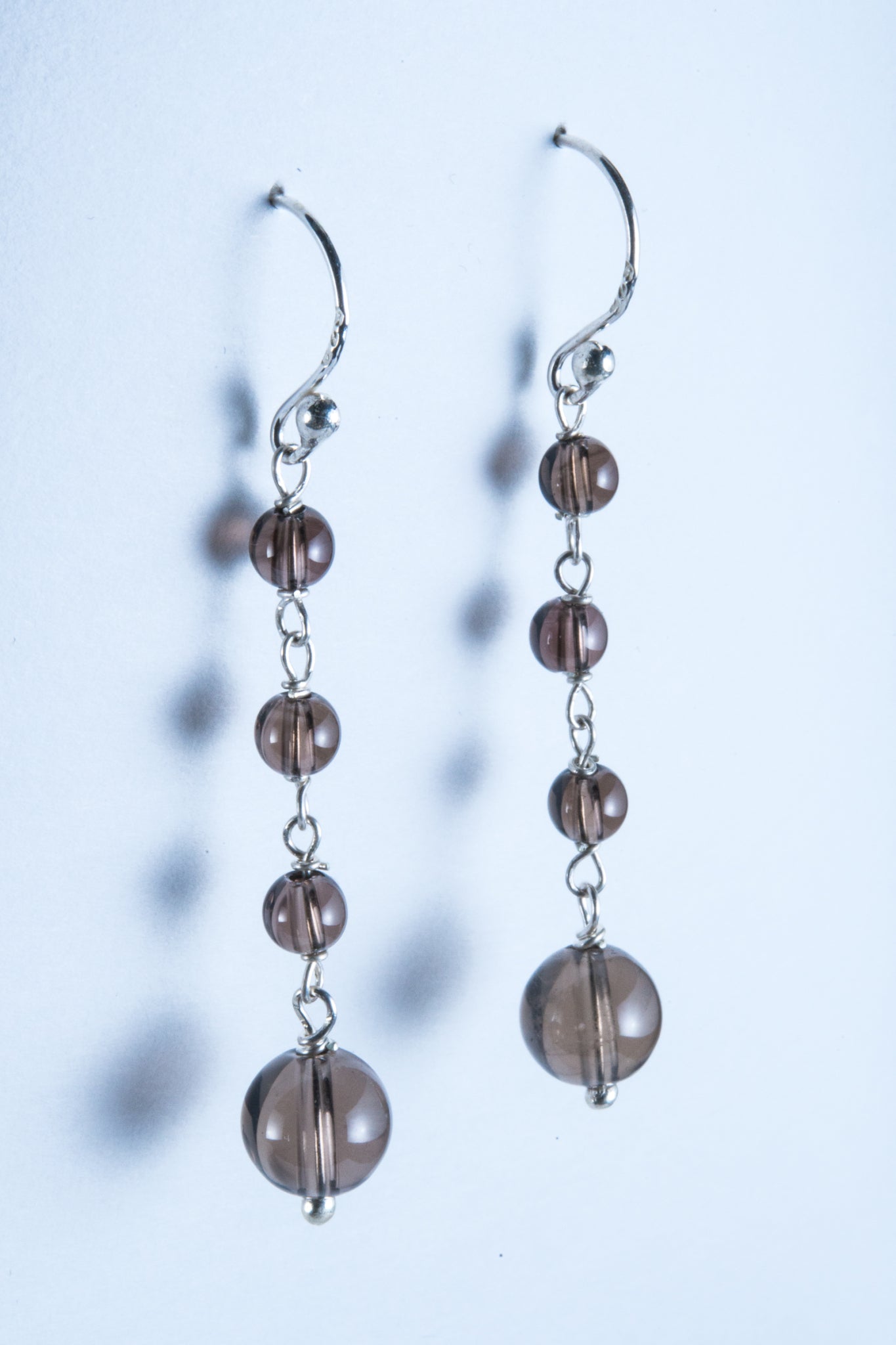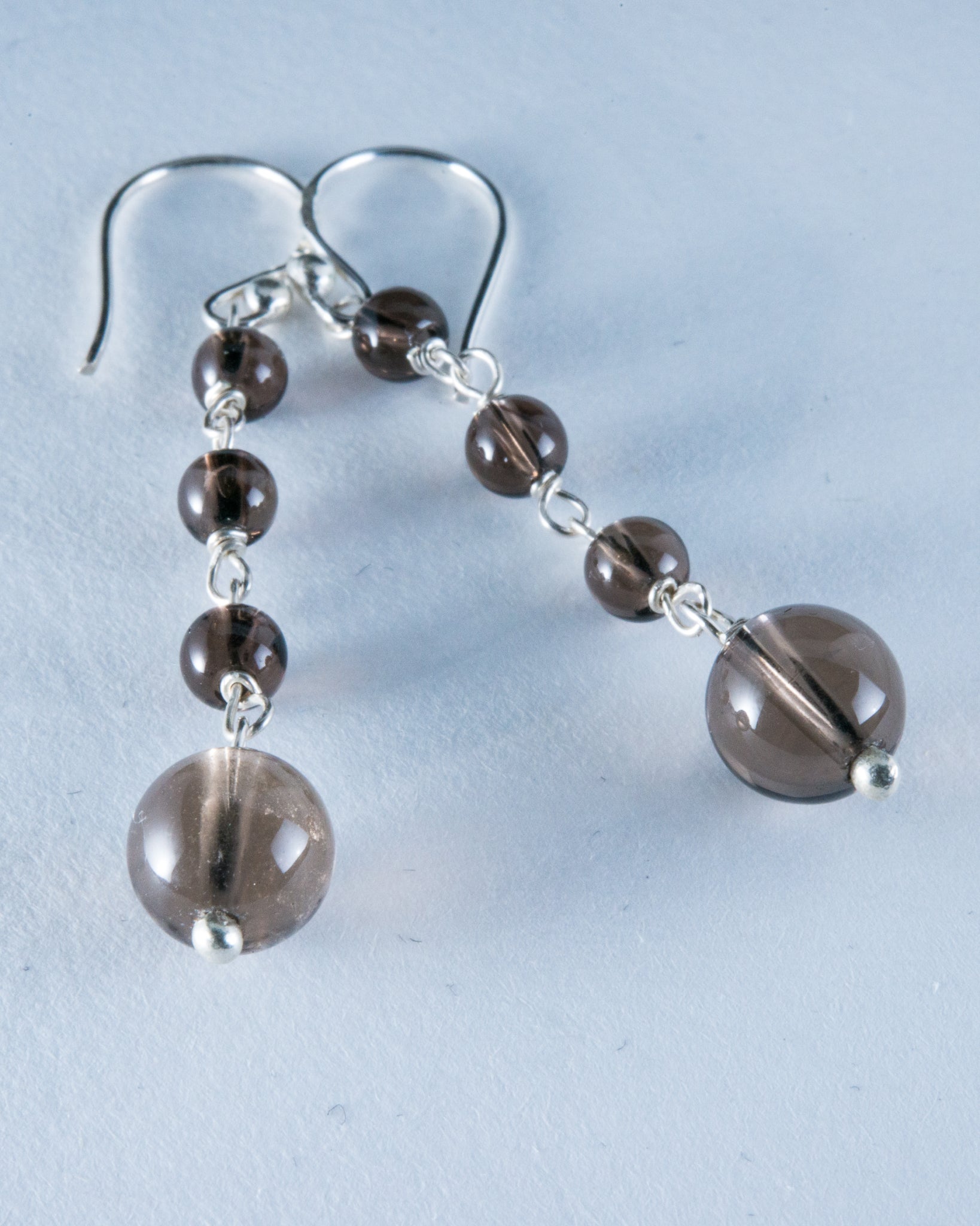 Smokey Quartz Sterling Silver Beaded Earrings (A018)